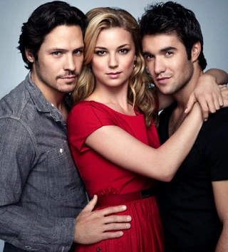 From left to right: Nick Wechsler (Jack Porter), Emily VanCamp (Emily Thorne/Amanda Clarke), Joshua Bowman (Daniel Grayson).